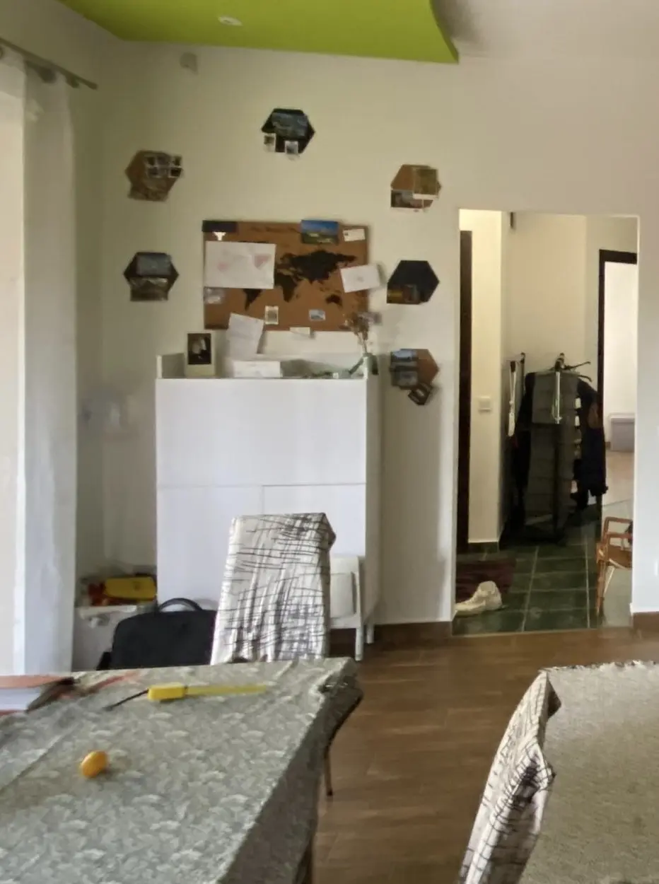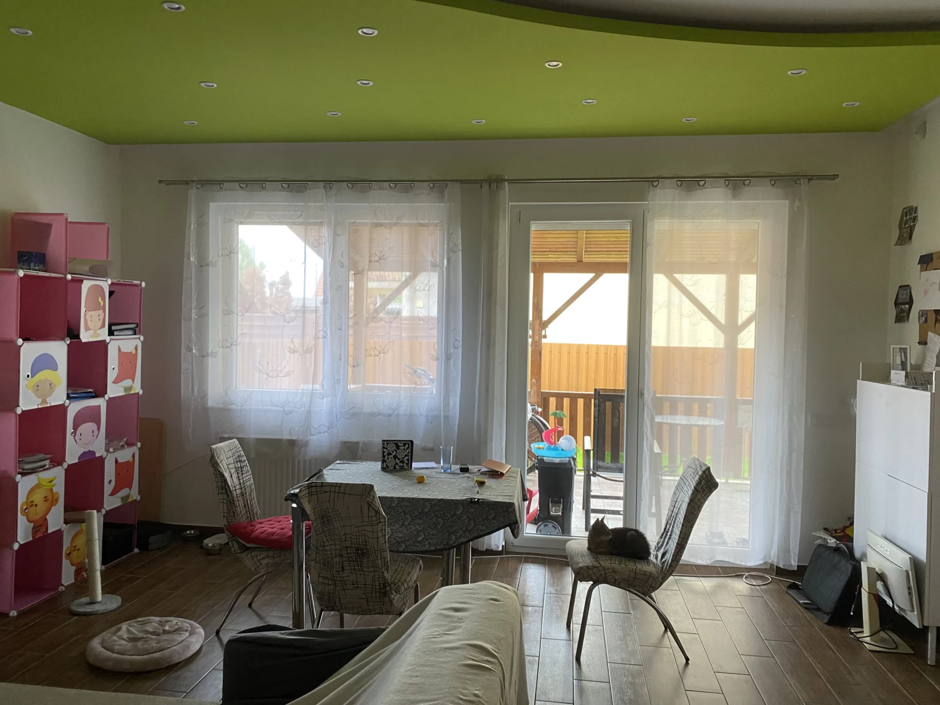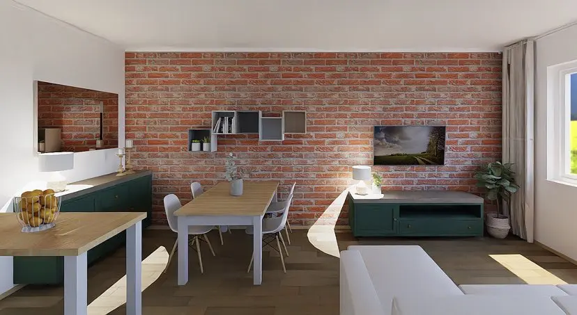 A családi ház tulajdonosa arra kért, alakítsam ki úgy a nappalijukat, hogy legyen helye étkezőnek és dolgozósaroknak is benne.